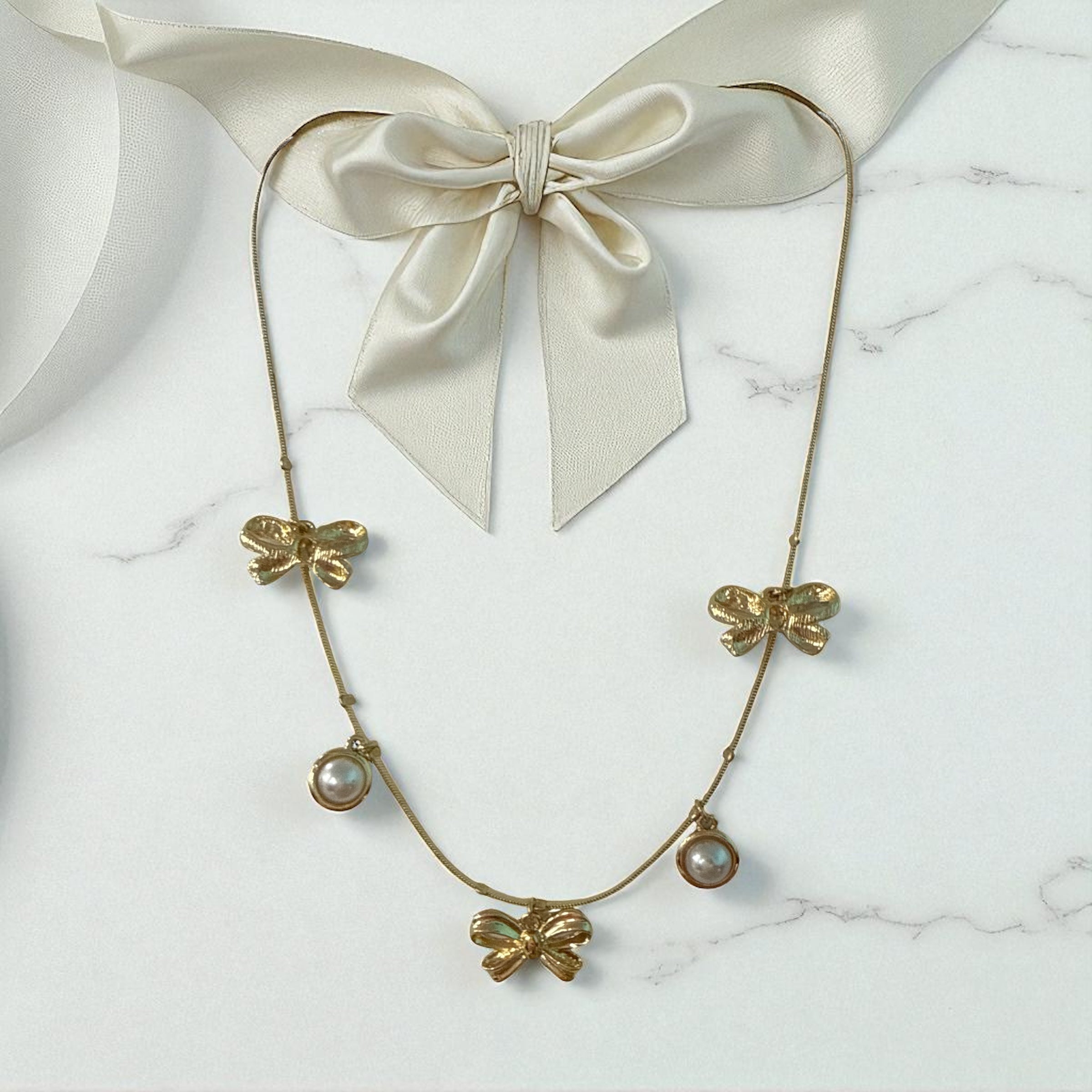 Gold Chain W/ Pearl & Bow Charms 16-18" – Shop Daffodils Boutique