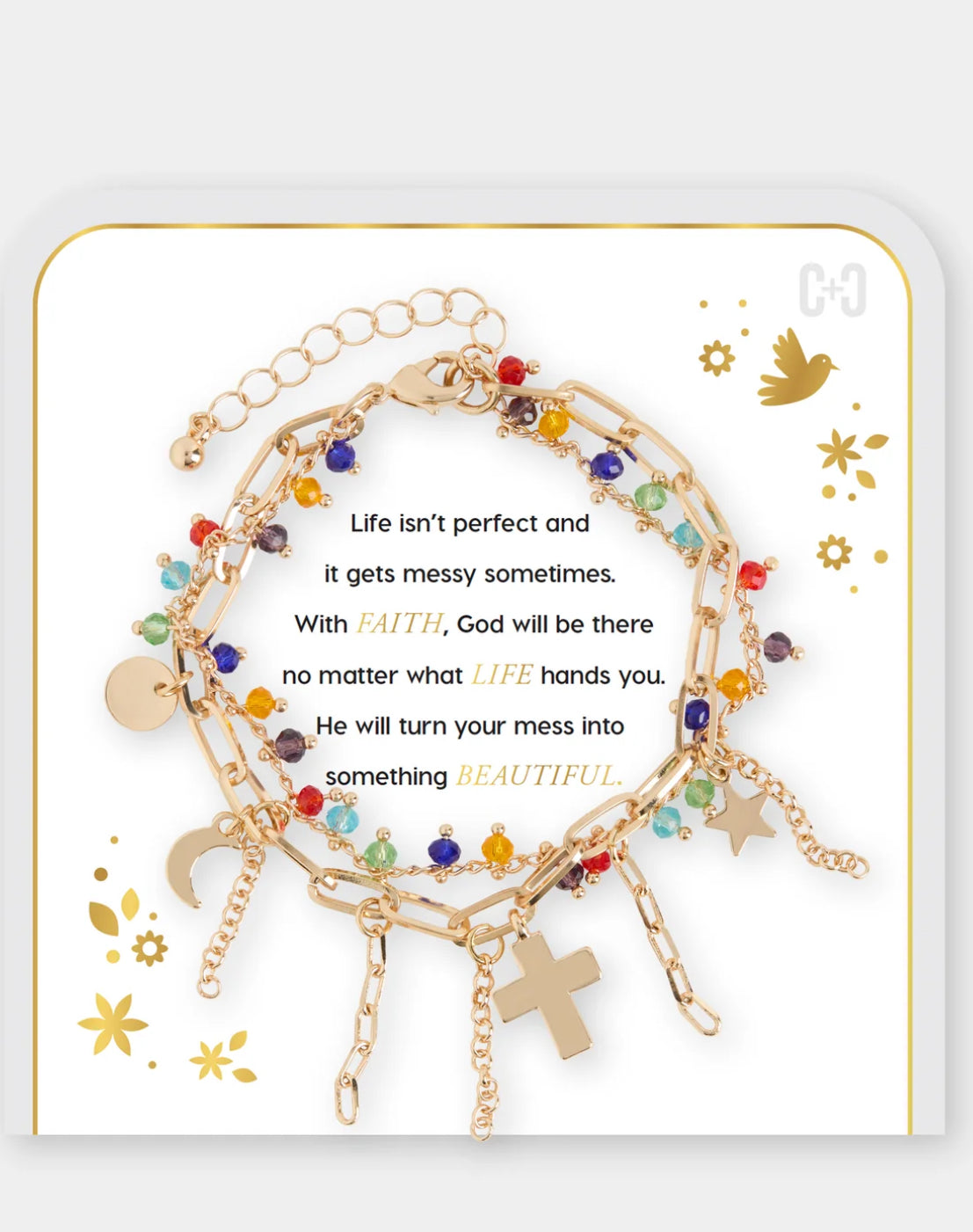 Curated carded jewelry for that meaningful perfect grab-and-go gift. Beautifully carded and ready to gift. Comes on a sweet sentiment card. Life isn't perfect and it gets messy sometimes. With faith, God will be there no matter what life hands you. He will turn your mess into something beautiful.