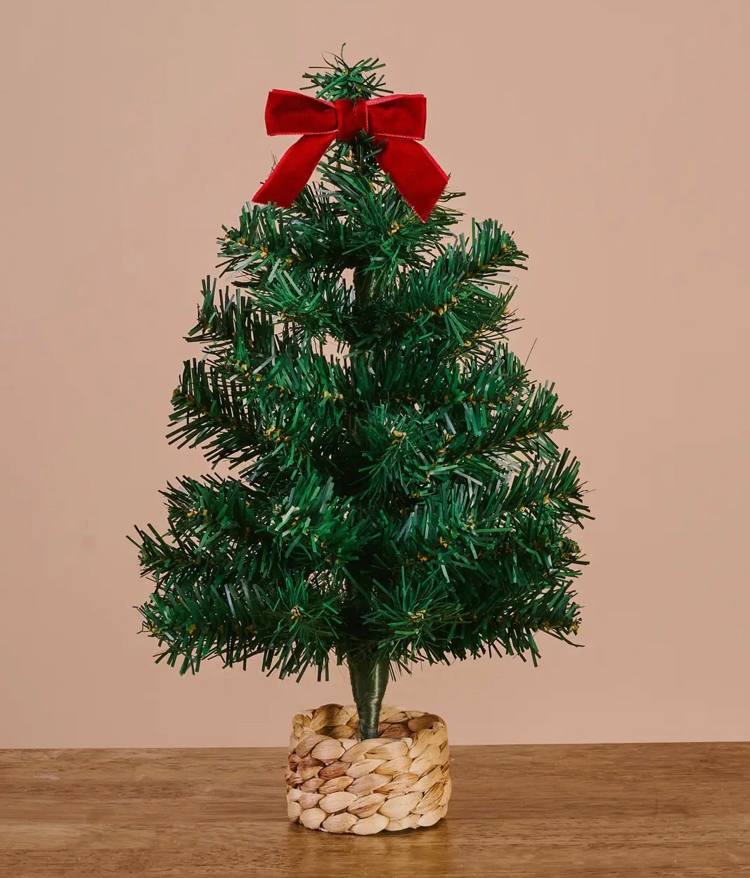 Tiny tree, big holiday charm. Our Mini Artificial Christmas Trees are the perfect way to add a pop of festive cheer to any space. Available in two darling styles—blush pink topped with a pink bow, or classic green finished with a red bow—each tree pairs perfectly with our ornament advent calendars or stands out beautifully on its own. Compact and full of character, they're ideal for apartments, offices, dorms, or any cozy corner in need of holiday sparkle. Sold individually. Perfectly petite, adds a pop of holiday cheer anywhere Includes a matching bow tree topper (pink on pink, red on green) Choose from festive pink or classic green to match your unique holiday vibe Compact size ideal for apartments, offices, or cozy corners Dims: 10"w x 16"h
