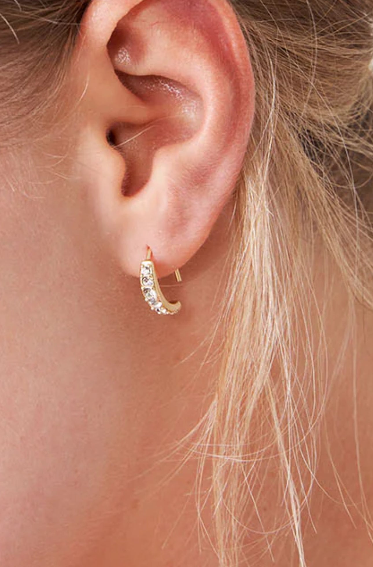 Made for holiday parties, our Sparkle Arc Hoop Earrings shimmer and shine with glass crystals set in lightweight 18kt matte gold plated settings.
