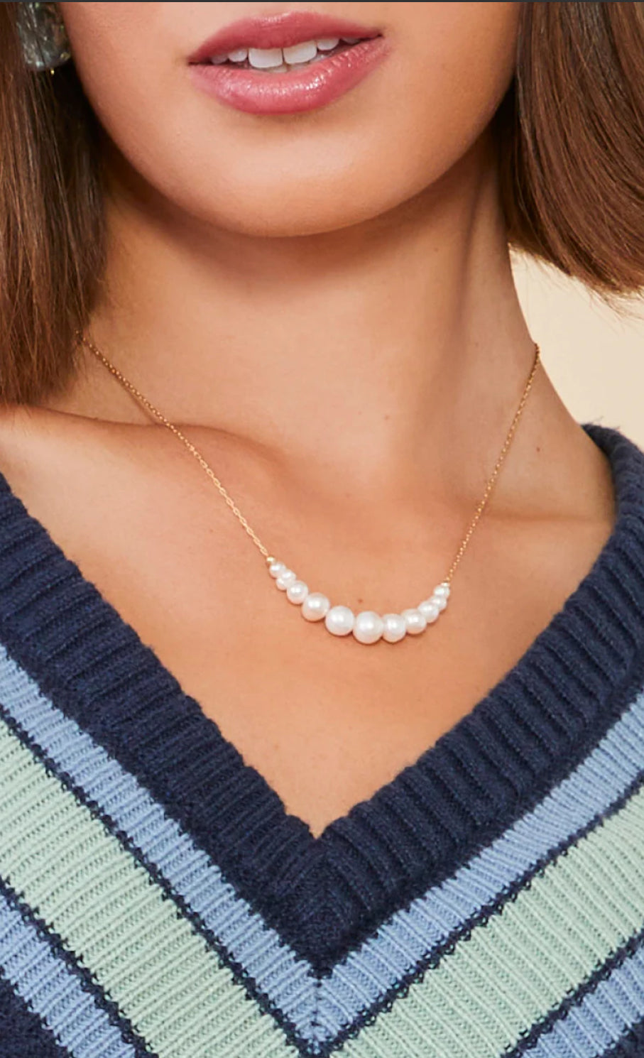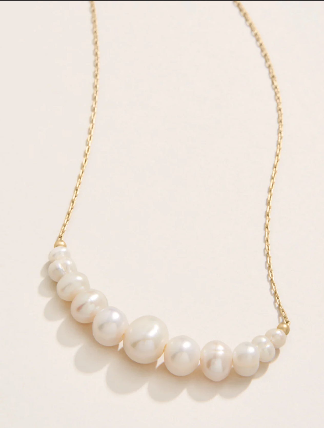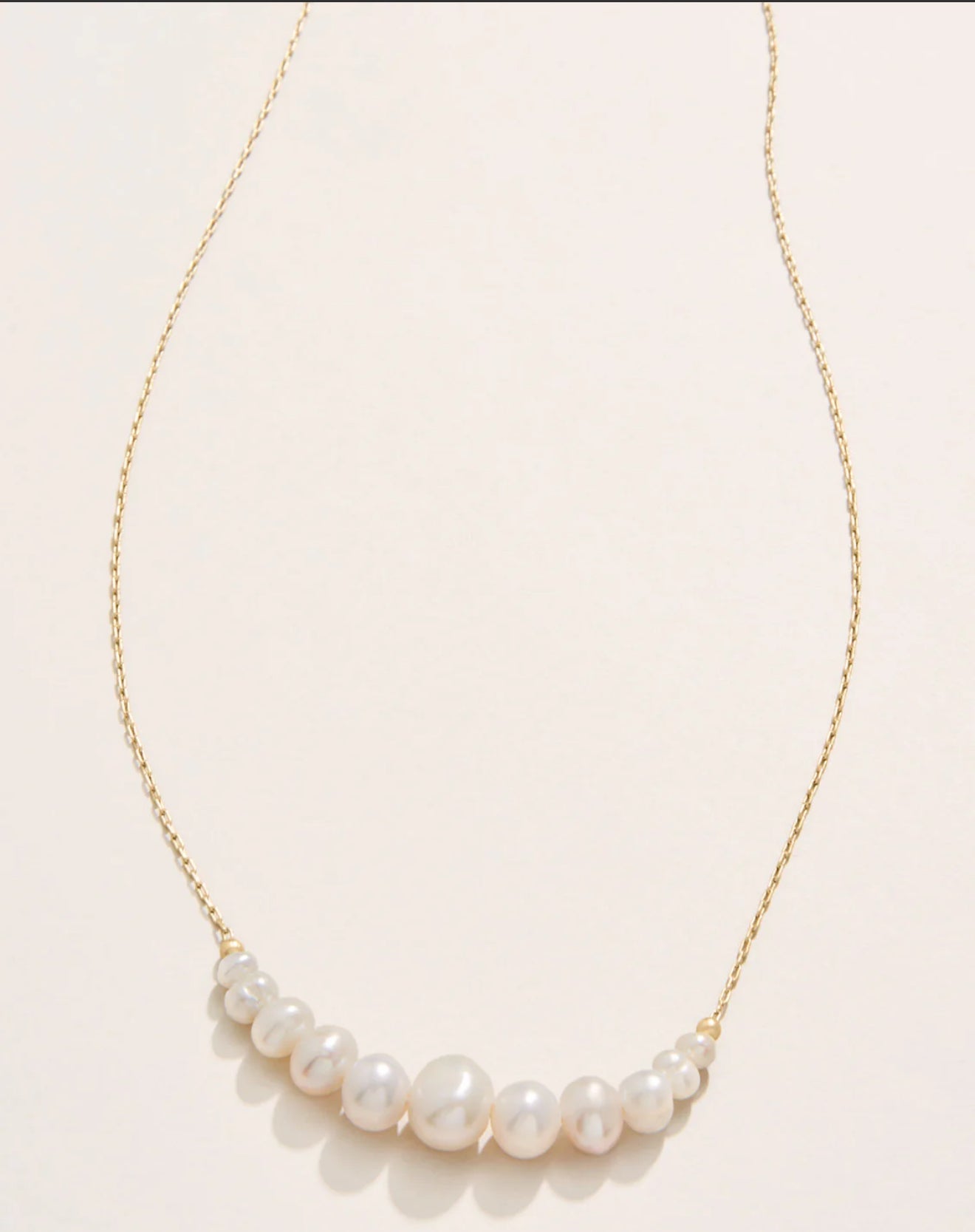 Dainty and delicate, our Paragon Pearl Necklace features a thin chain decorated with semi-precious, freshwater pearls. This necklace is the perfect complement to any outfit.