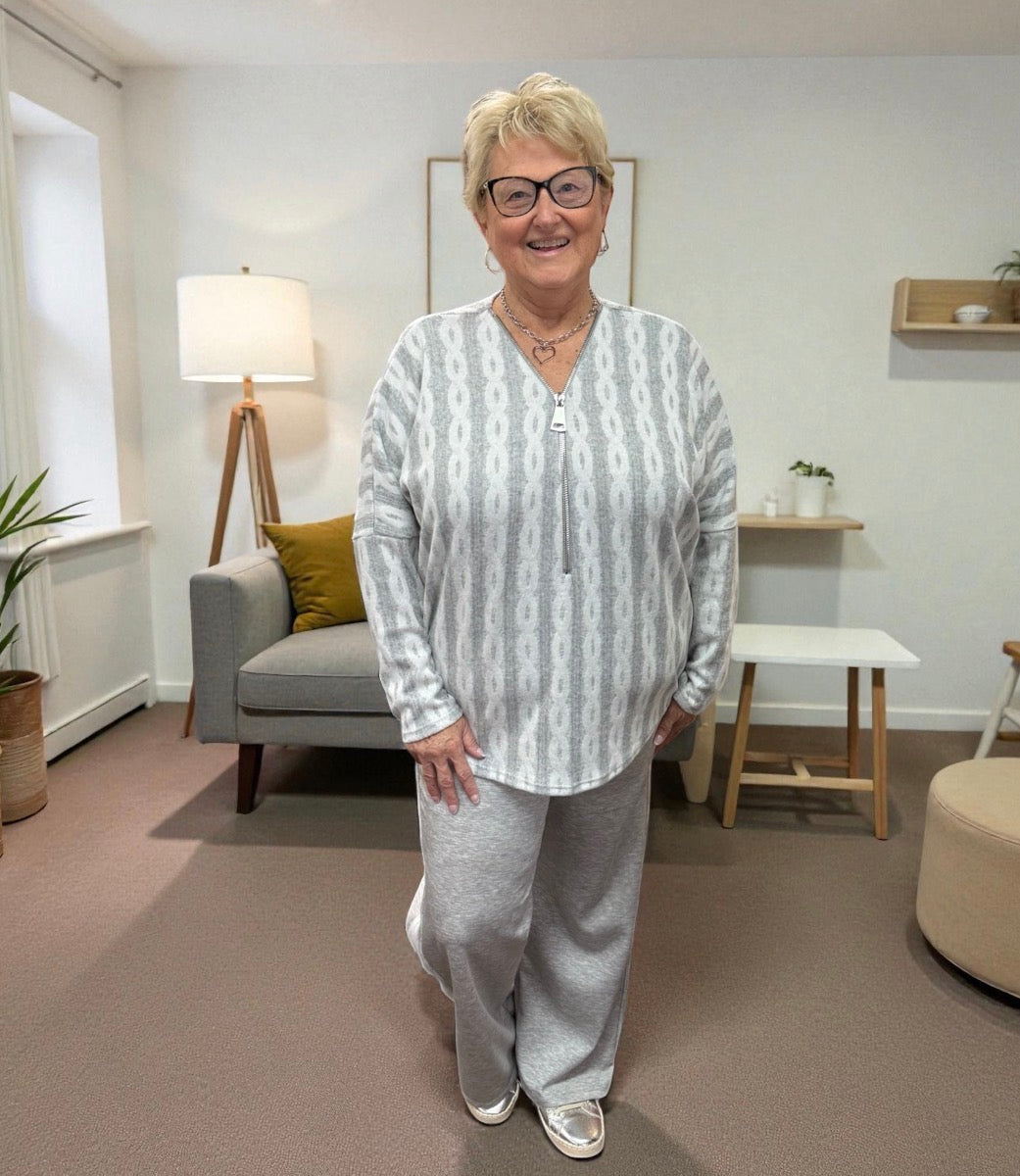 Introducing our Silver Dolman Sleeve Zipper Top. Enjoy long, ribbed sleeves with the added convenience of an adjustable zipper. Effortlessly stylish and easy to wear, this top is perfect for those who appreciate both fashion and function. Upgrade your wardrobe with our silver-colored top today!