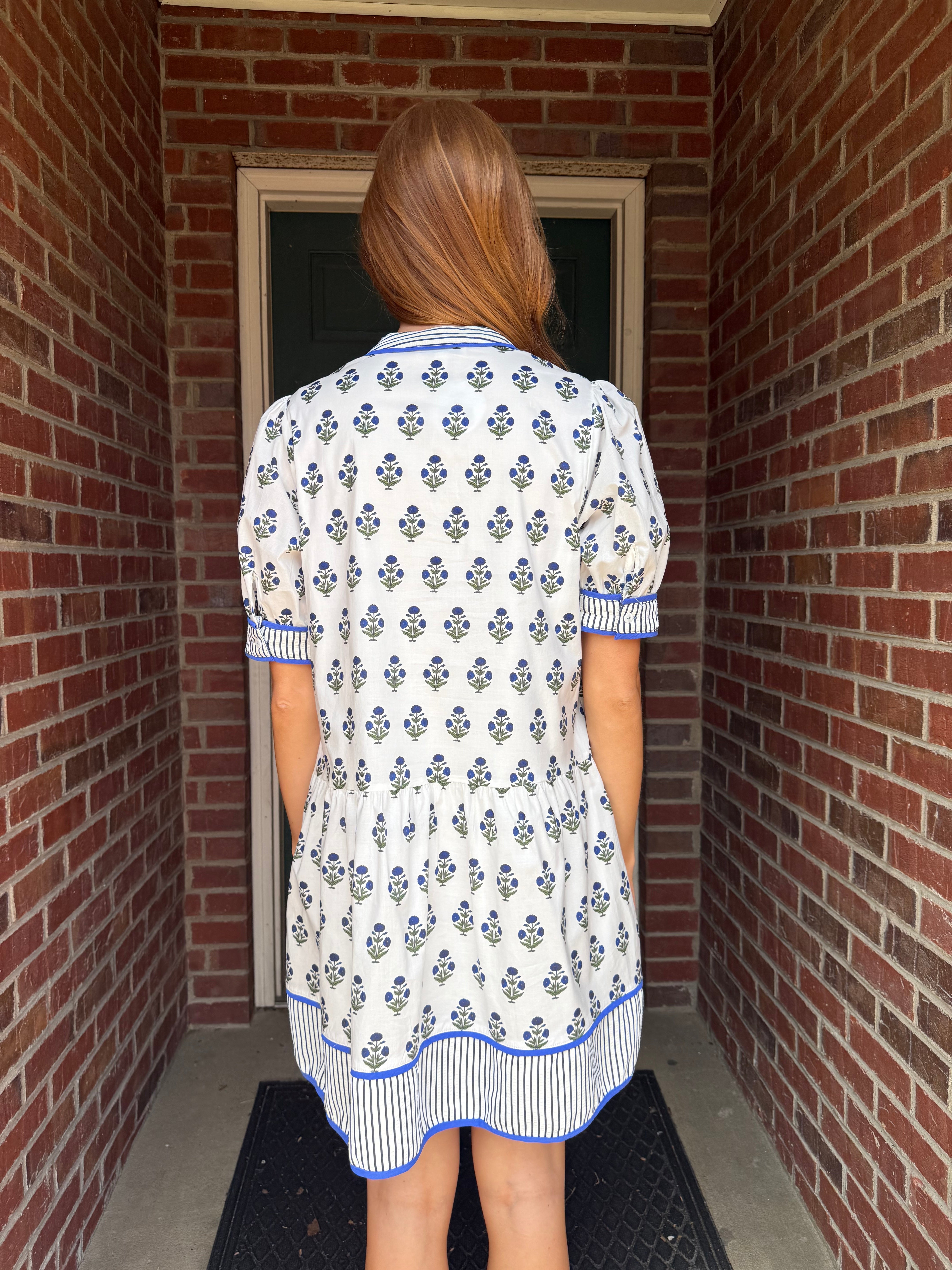 Elevate your everyday style with this charming woven button-down mini dress. Crafted from a breathable cotton-spandex blend, it features short sleeves, an eye-catching printed design, and contrast detailing that adds visual interest. Practical pockets keep your essentials close, while the relaxed fit flatters all body types. Perfect for casual outings, weekend brunches, or dressed-up occasions with the right accessories. Model is 5'8" wearing size small.