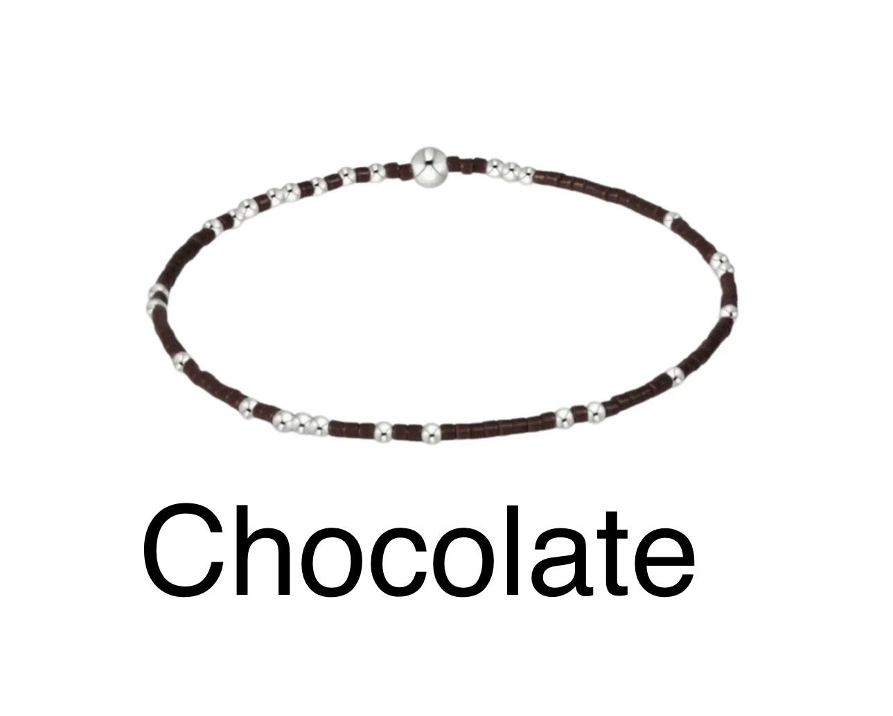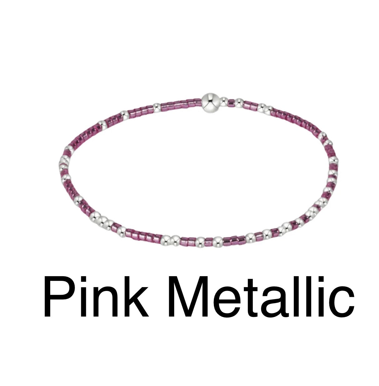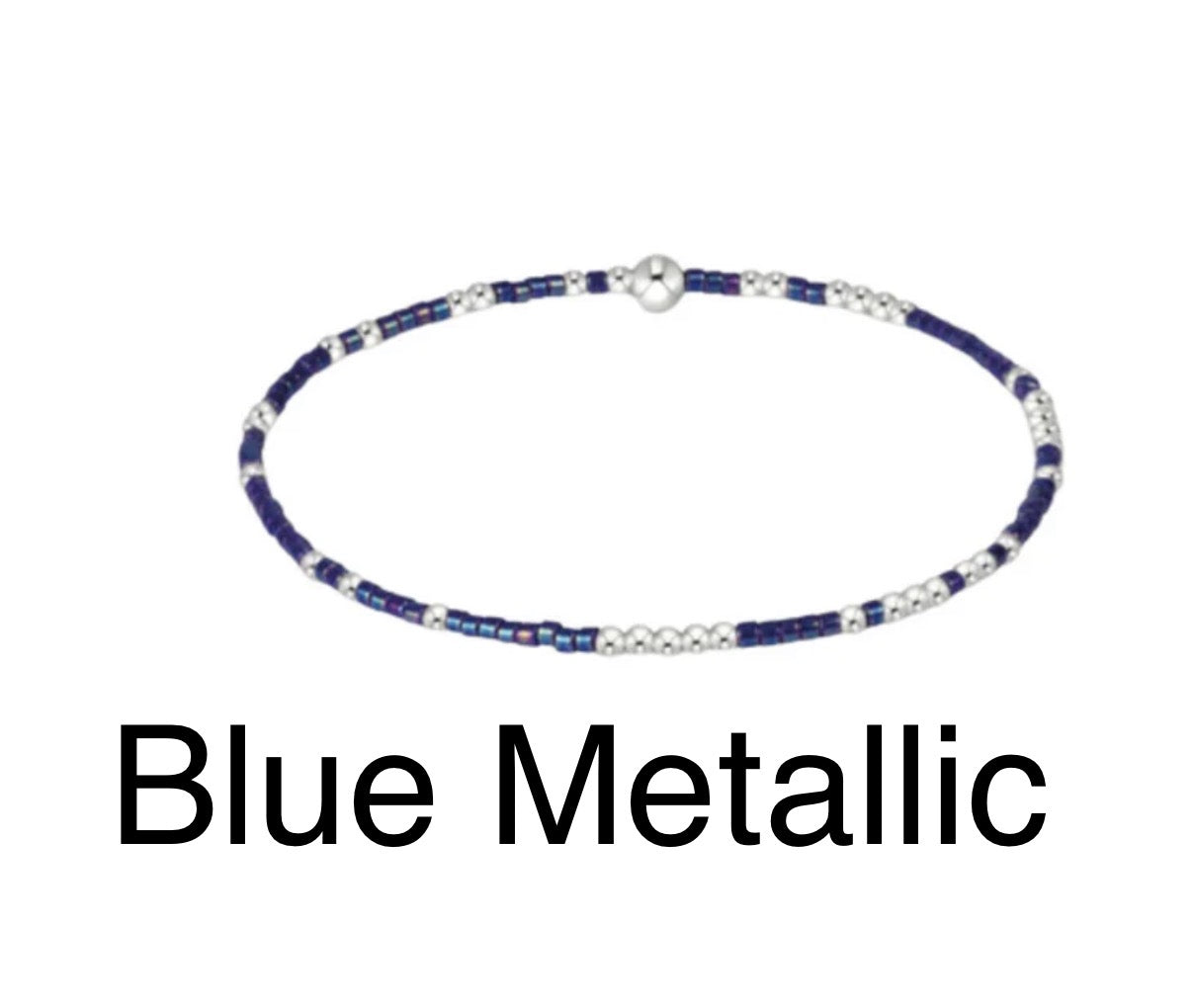 Hand beaded on high performance elastic for a slight stretch to easily roll on and off your wrist