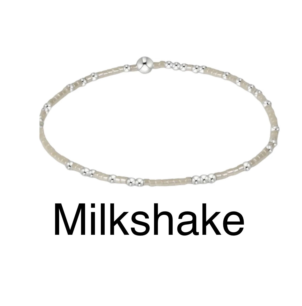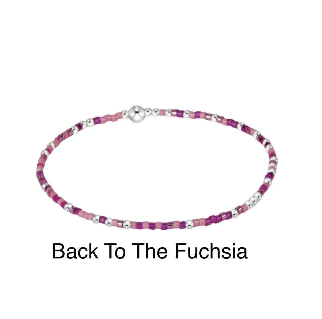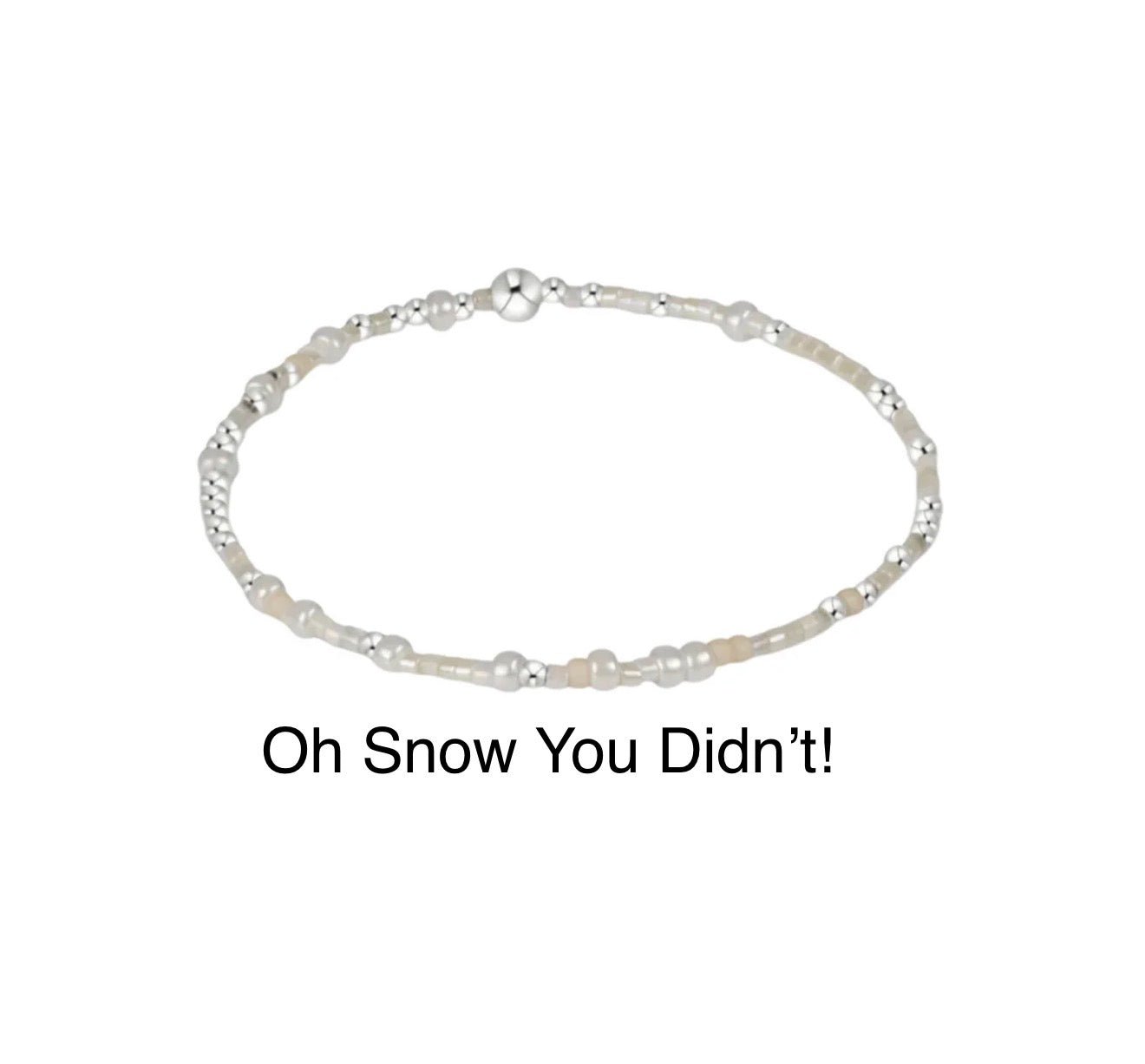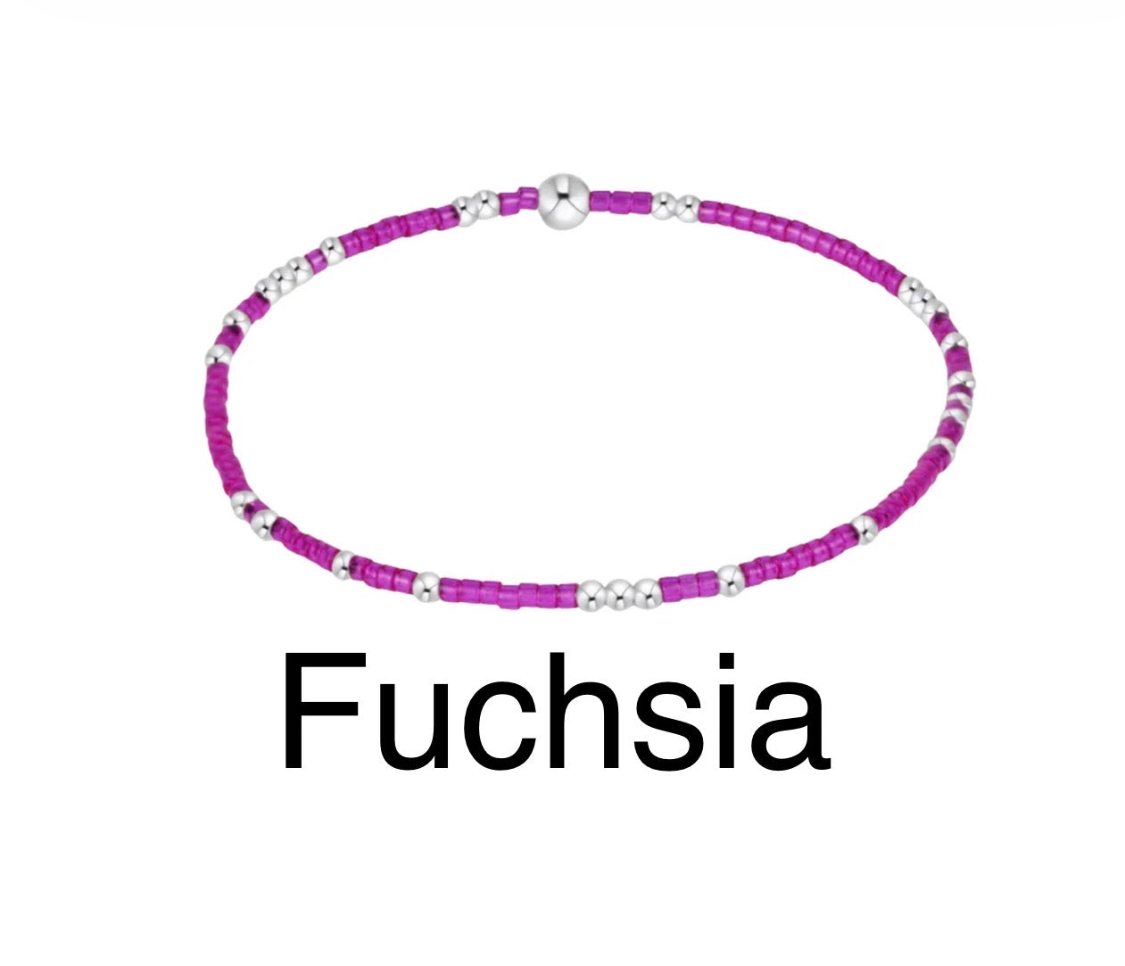 Hand beaded on high performance elastic for a slight stretch to easily roll on and off your wrist