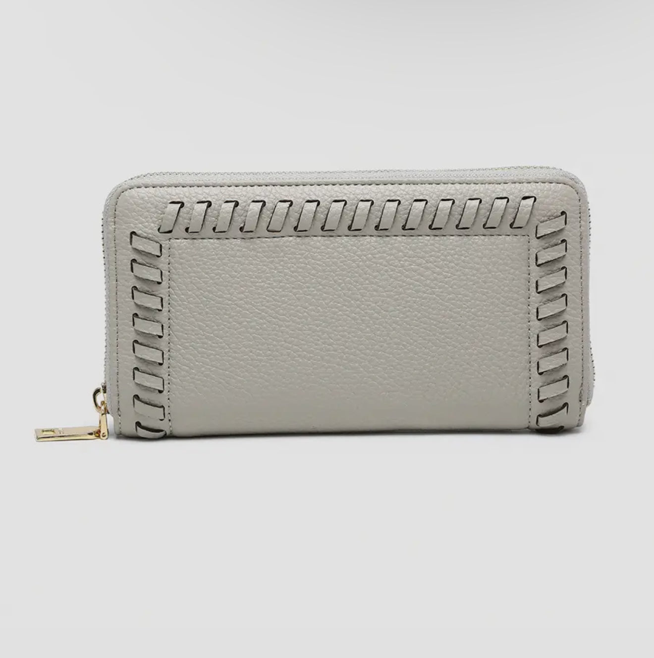 -Zip-Around Closure: Provides secure and complete access to the wallet's contents. -Front Whipstitch Detailing: Adds a sophisticated and stylish touch. -Back Slip Pocket: Offers extra space for quick-access items. -Three Compartments: Organizes your essentials efficiently. -Multi Card Slots & Zip Pocket: Keeps credit cards, identification, and cash well-organized. Dimensions: -Length: 7.5 inches -Height: 4.25 inches The Nora Whipstitch Wallet is perfect for those seeking a functional yet fashionable wallet that enhances both style and organization—an ideal addition to your fall accessories.