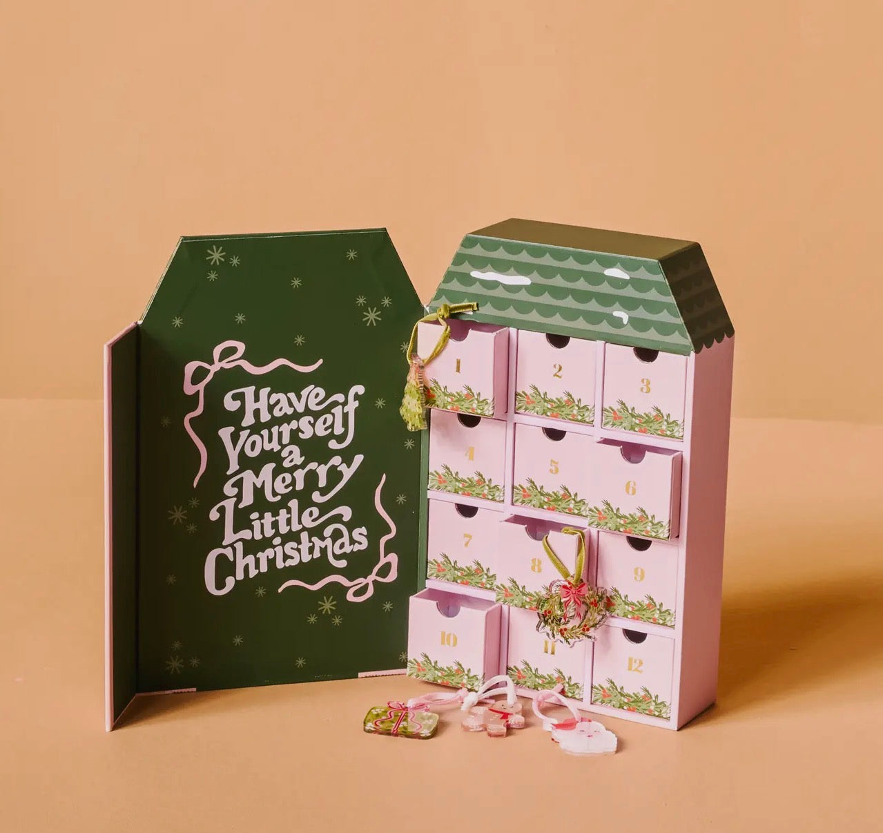 includes curated mini ornaments for a fun 12-day countdown to christmas