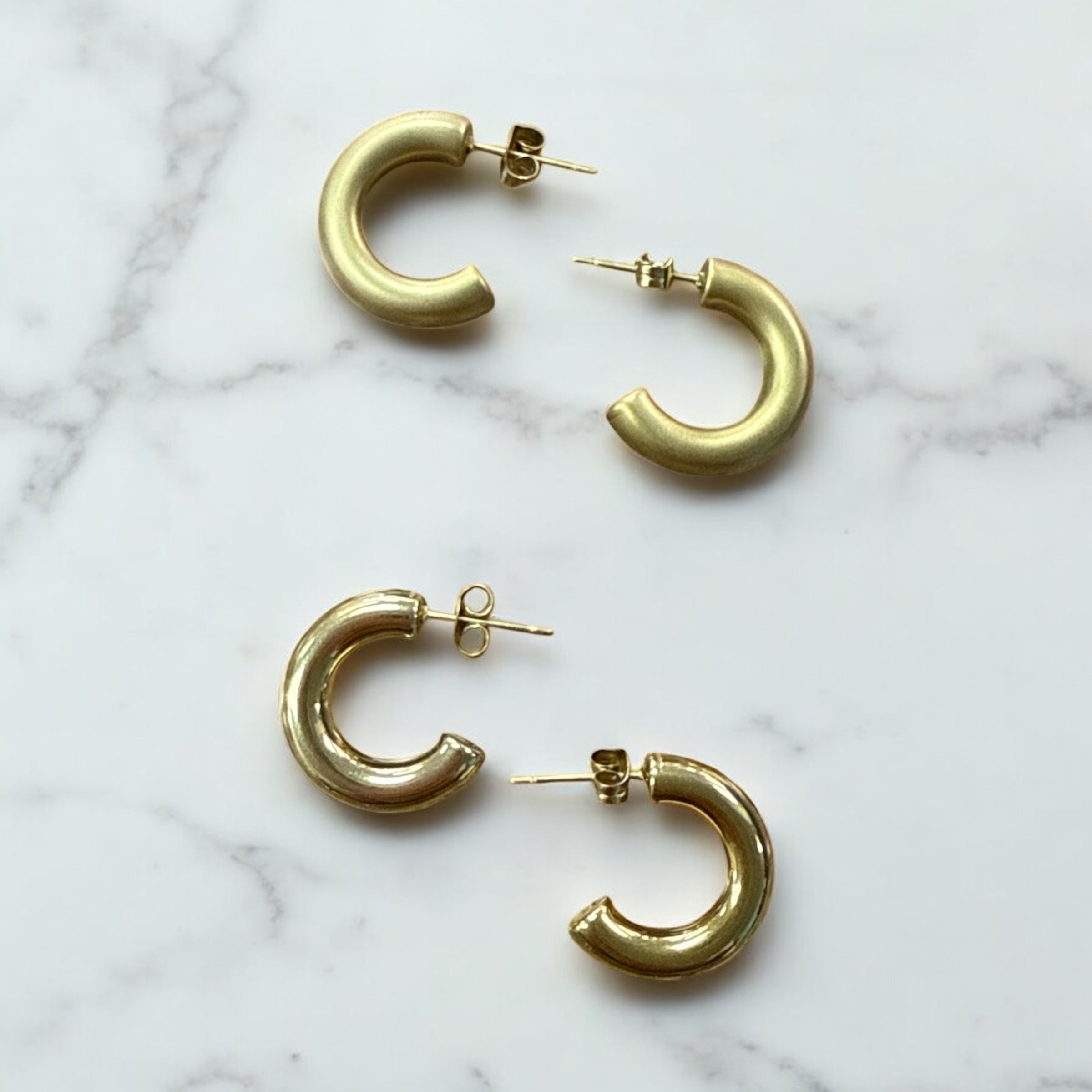 Elevate your everyday style with these versatile 20MM Josie Hoops. Featuring a sleek 5MM hollow design that's both lightweight and water-resistant, these small open hoops make a statement without weighing you down. Available in brushed or shiny finishes in both gold and silver, they're the perfect accessory to transition from day to night. Add these timeless hoops to your collection for effortless elegance that complements any outfit.