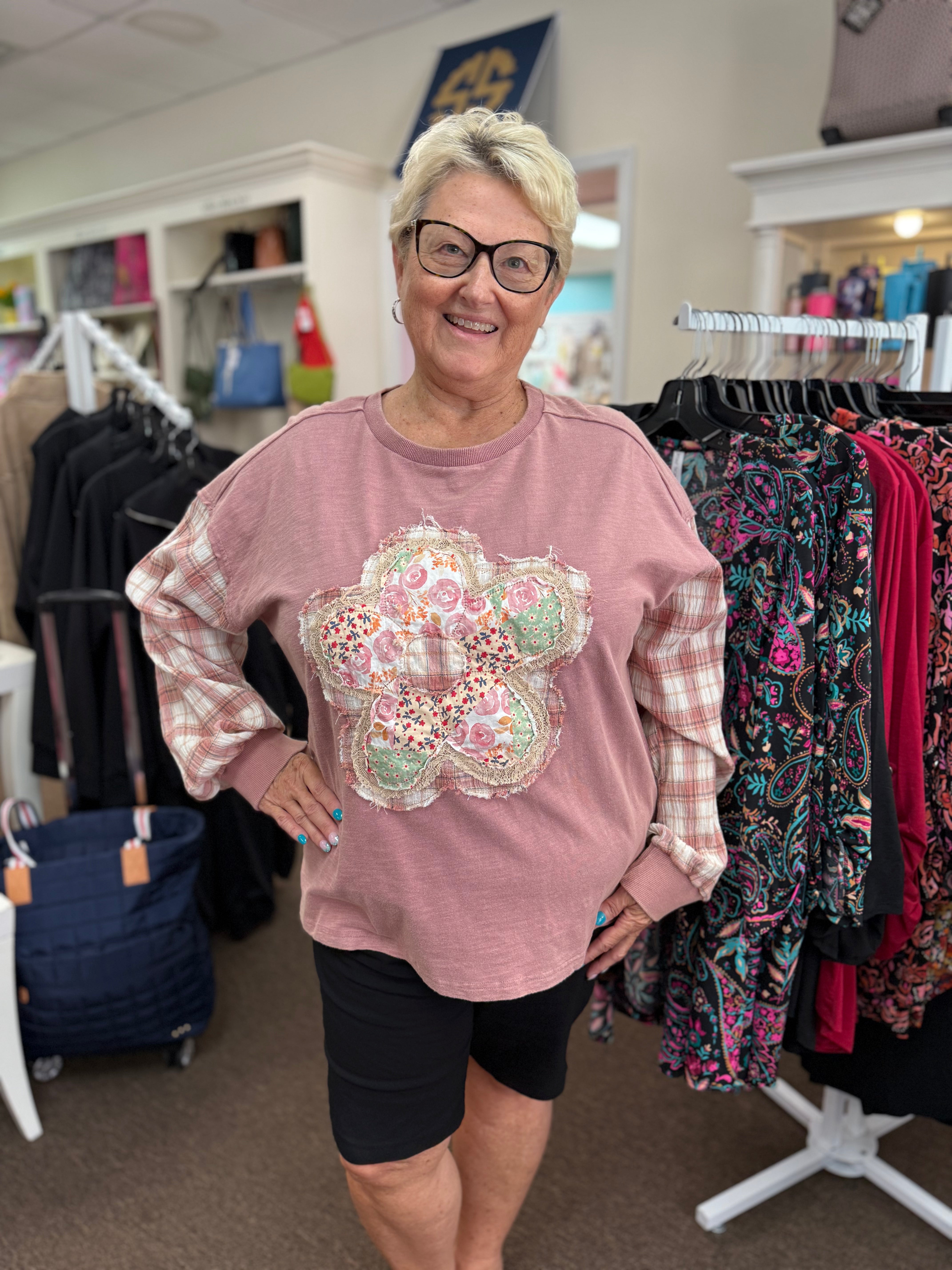 FLOWER PATCH FRONT WASHED COTTON TOP