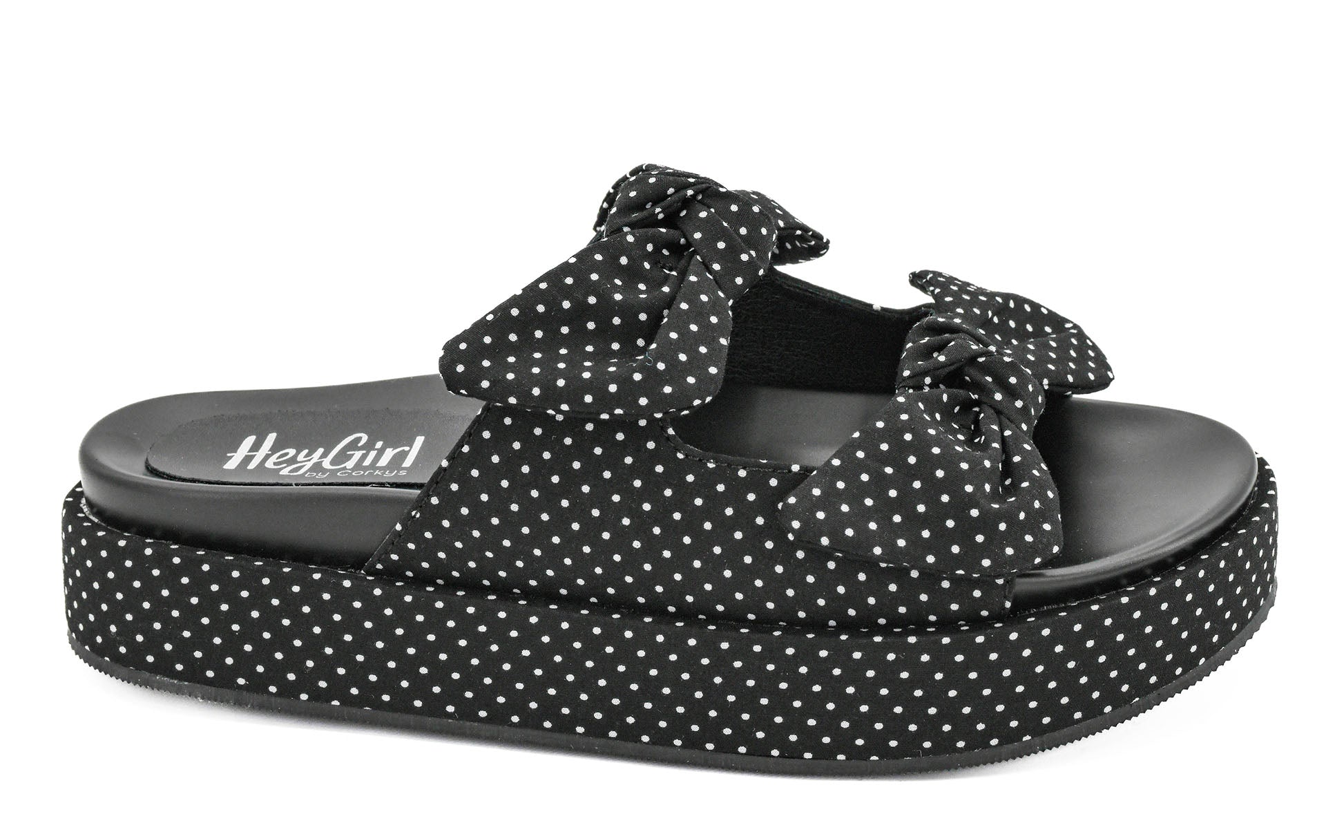 Step into wild style with Corky's Black Polka Dot Lil Bit Knotty slides. The cozy cushioned platform sole and playful oversized bow detail make these the perfect combo of comfort and statement. Whether for a gift or yourself (we won't tell 😉), these are a must-have for any fashion lover.