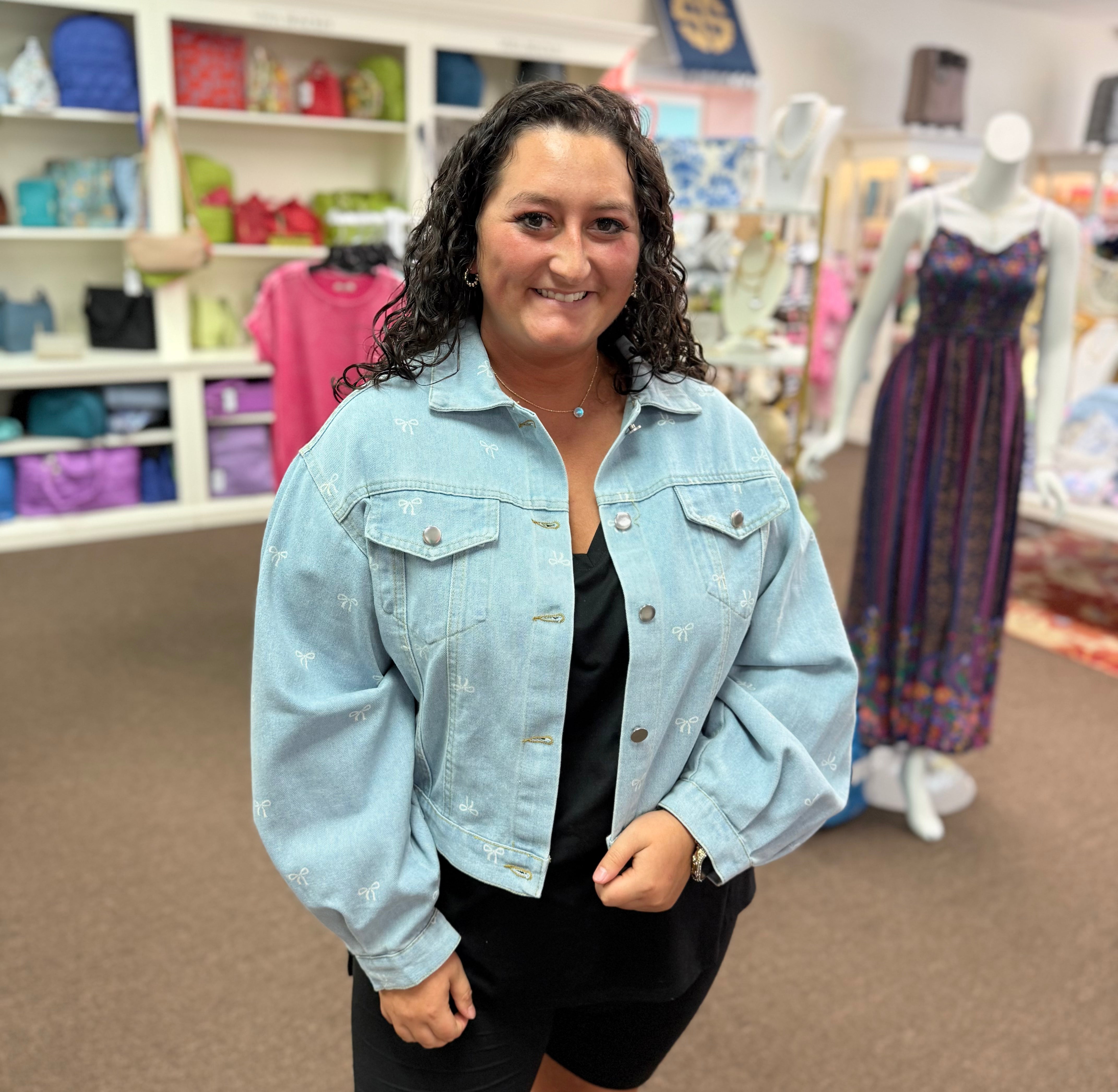 Mandie Bow Print Denim Jacket – Shop Daffodils Boutique