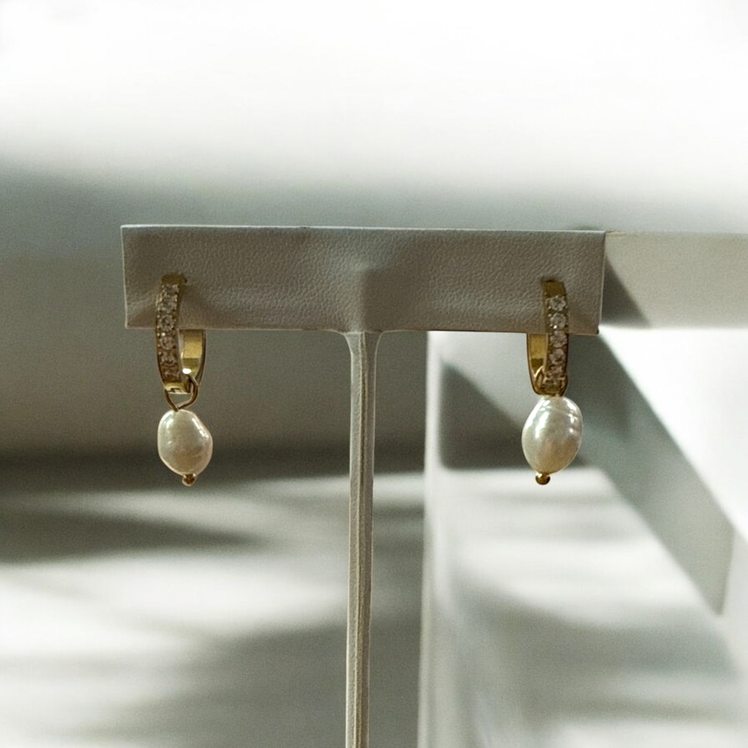 CZ Inlay & Pearl Drop Gold Earring – Shop Daffodils Boutique