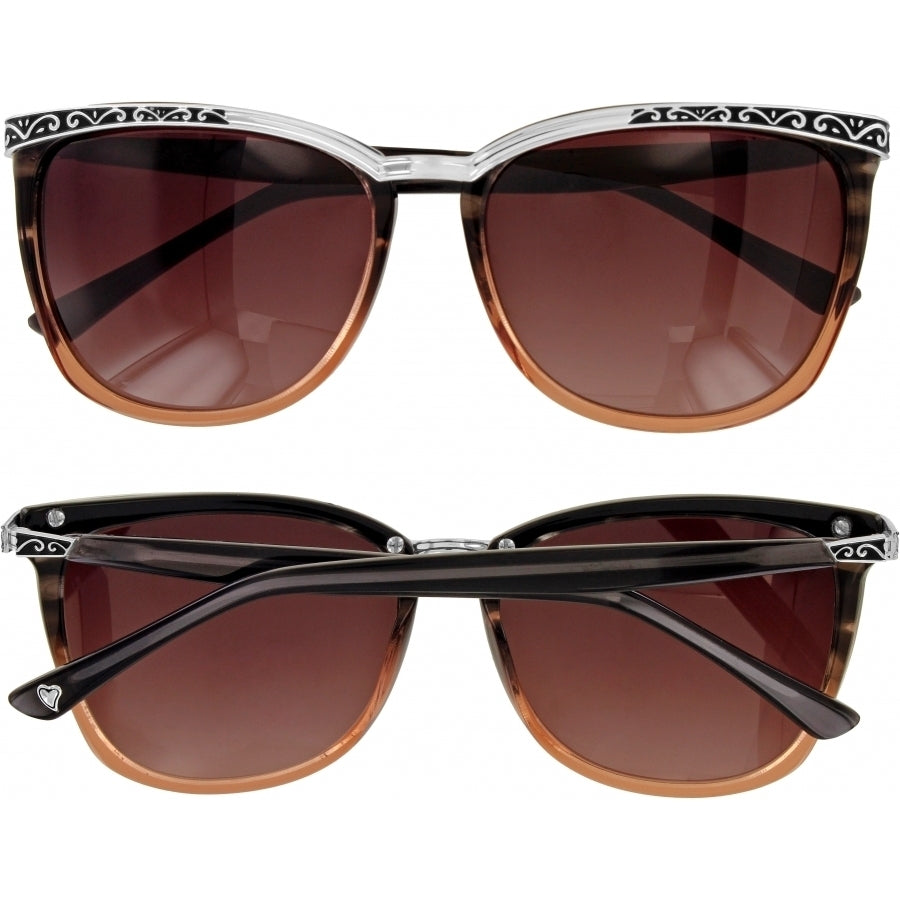 Scroll accents inspired by our La Scala jewelry are the perfect embellishments for this sunglasses design. The frame is a tri-color blend of brown tones that complement the metal trim for a stylish effect.