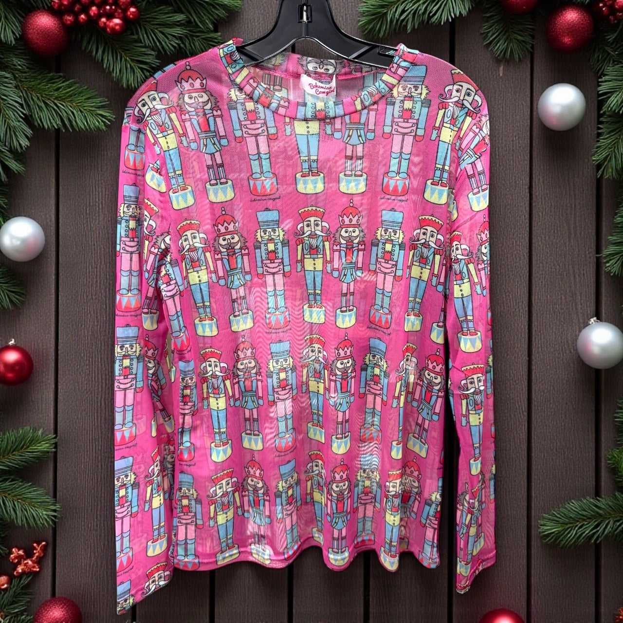 Crack open some style with this Nutcracker mesh top! Lightweight and breathable mesh material keeps you cool while the nutcracker design adds a touch of whimsy to any outfit. Perfect for parties or everyday wear. (Crack jokes, not nuts!)