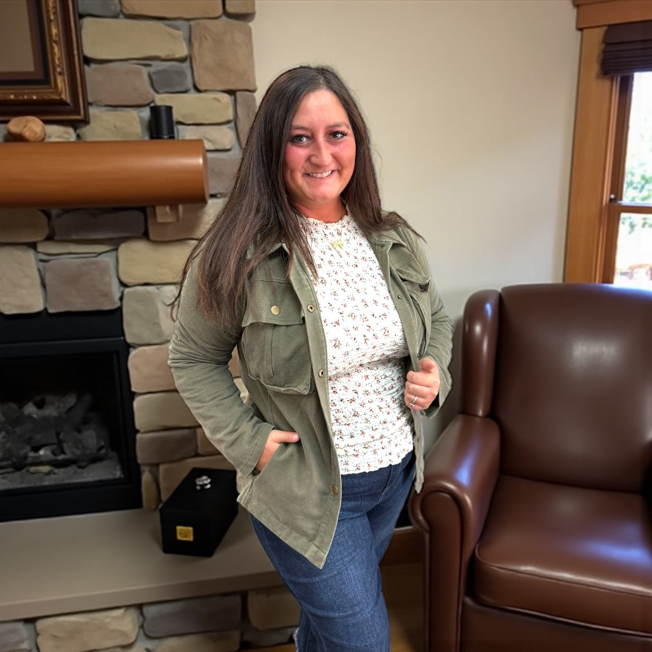 tailored fit, hand pockets, and chest patch pockets with snap closure flaps