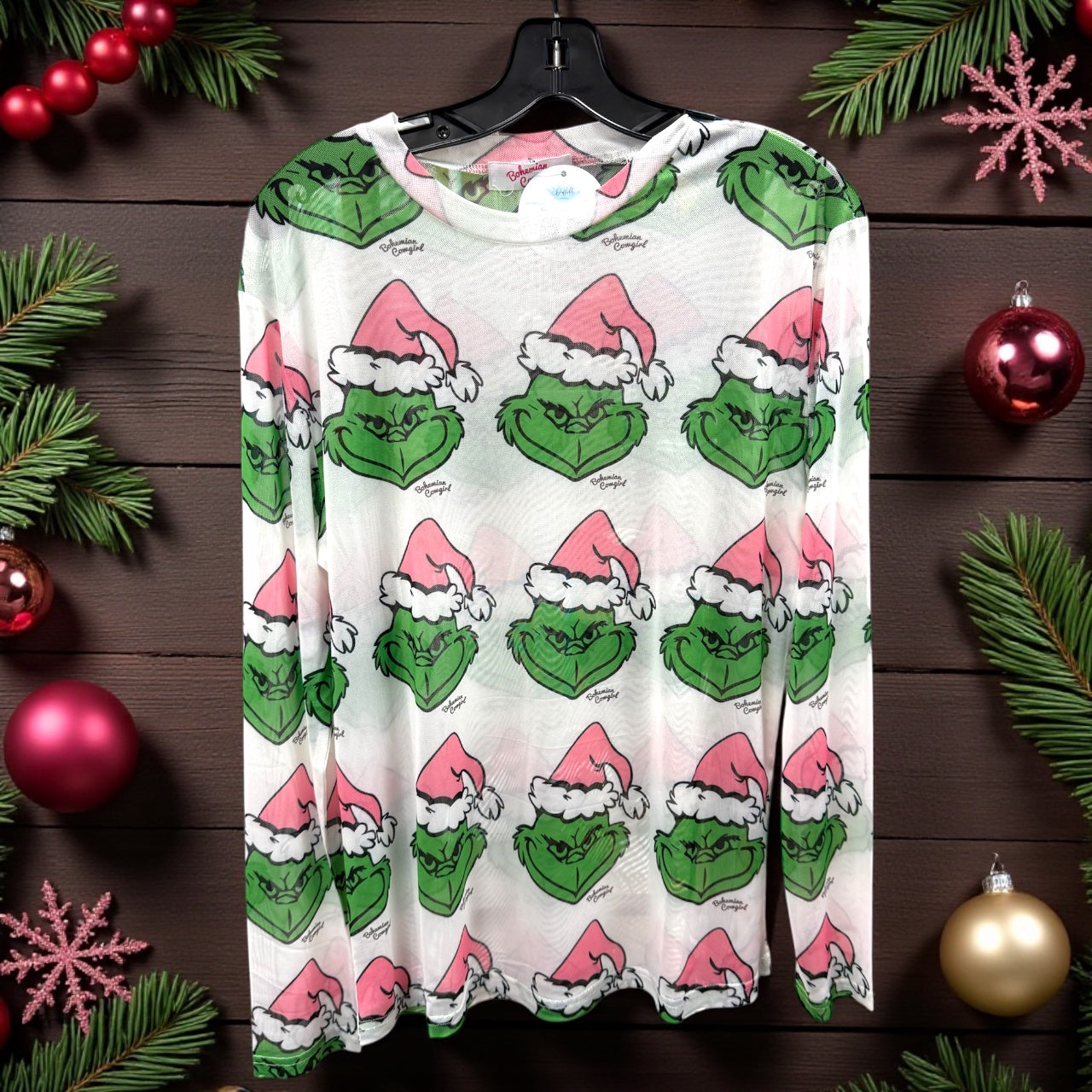 Spread some festive cheer with our Santa Hat Grinch Mesh Top! This playful top features a fun and quirky grinch mesh design that adds a unique touch to your holiday outfit. Perfect for those who don't take themselves too seriously, this top is sure to bring some humor and style to any celebration.